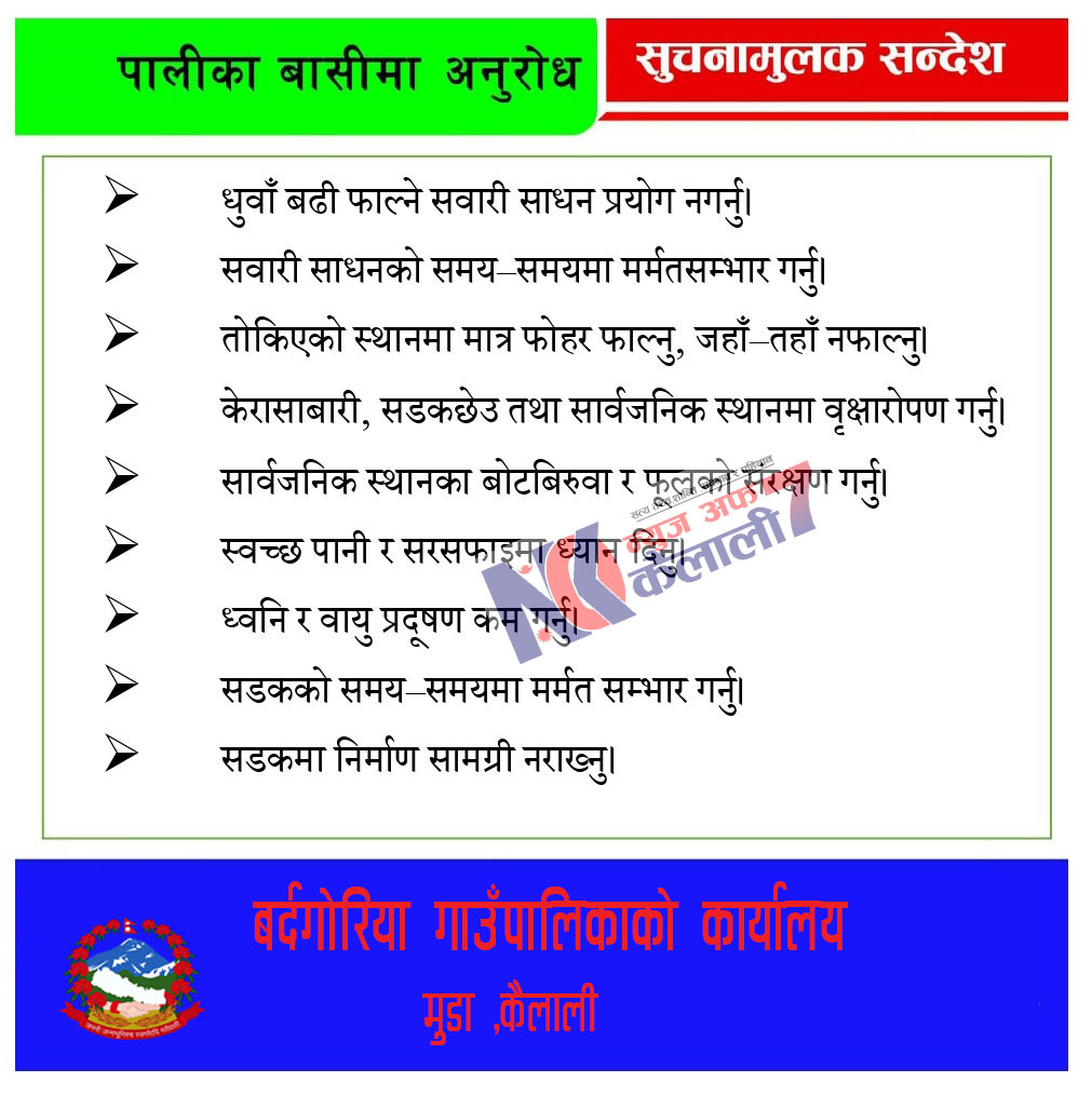 बौनिया।नेपाल कम्युनिष्ट पार्टी (नेकपा ) का उम्मेदवार नन्द बहादुर साउद कैलाली क्षेत्र नम्बर २ मा चुनावी प्रचार–प्रसारलाई तीव्र बनाउँदै मतदाताको घरदैलो अभियानमा सक्रिय देखिएका छन्। बर्दगोरियाका विभिन्न बस्ती र टोलमा पुगेर साउदले मतदातासँग प्रत्यक्ष भेटघाट गर्दै आफ्नो चुनावी एजेण्डा र विगतका कामबारे जानकारी गराइरहेका छन्। घरदैलो अभियानका क्रममा स्थानीयसँग छलफल गर्दै उनले विकास, पूर्वाधार विस्तार, रोजगारी सिर्जना र सामाजिक सेवाका कार्यक्रमलाई प्राथमिकतामा राखेको बताएका छन।
